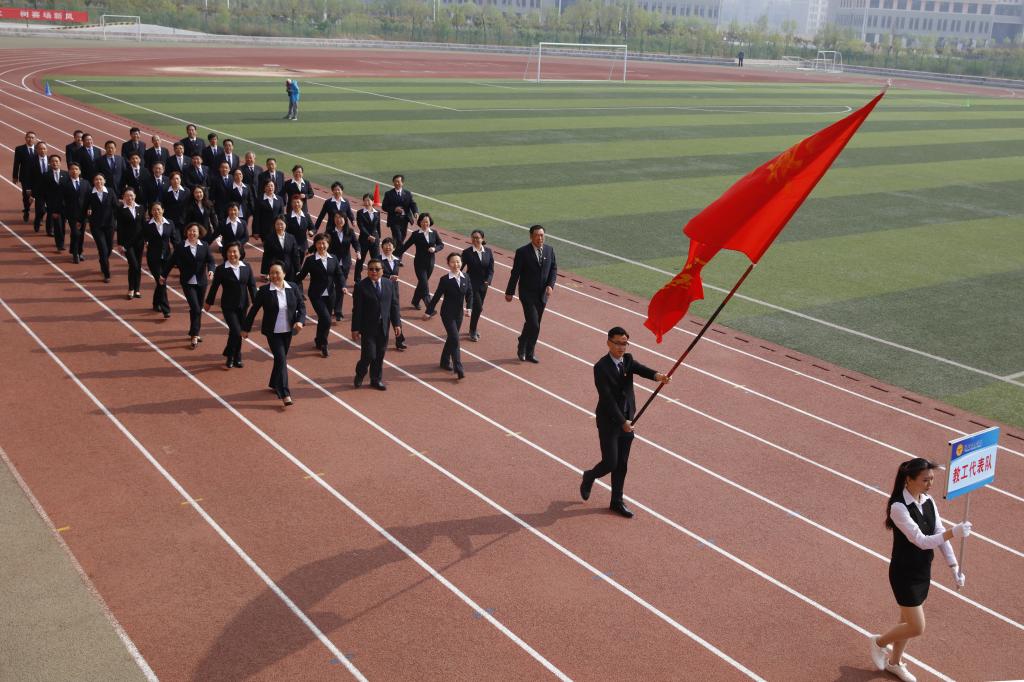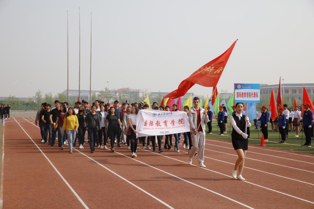 伴着《运动员进行曲》铿锵有力的节奏,在国旗护卫队的引领下,彩旗方队、裁判员方队以及各二级学院代表队迈着整齐坚定、昂扬奋进的步伐,喊着嘹亮的口号,着装整齐、精神抖擞依次通过主席台,尤其是外国留学生代表队以及穿插闺蜜步行进、红色腰鼓等表演博得了阵阵热烈掌声,充分展示了我院师生积极进取、奋发有为、昂扬向上的精神面貌。