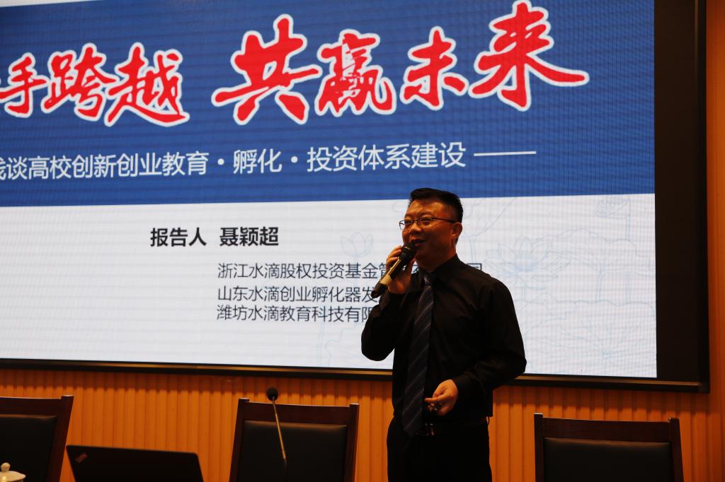 随后,贺志强副院长主持创新创业报告会。聂颖超作了《携手跨越、共赢未来——浅谈高校创新创业教育·孵化·投资体系建设》专题报告,赢得了与会代表的共鸣。会后,与会领导嘉宾一起参观了我院潍坊大学生“互联网+”创业中心创新创业项目展区。
