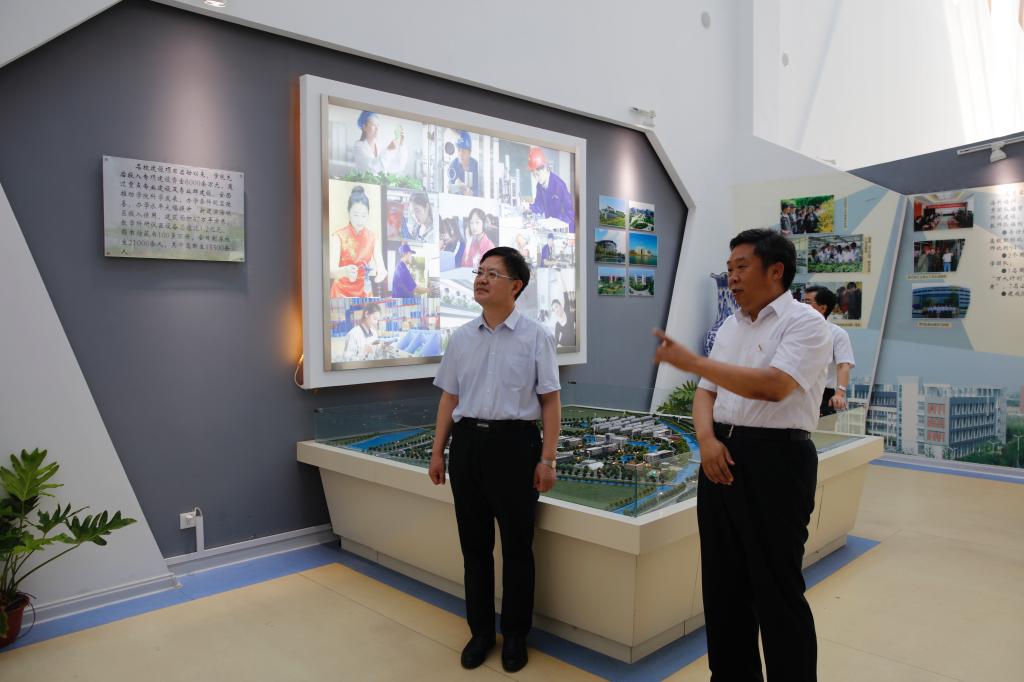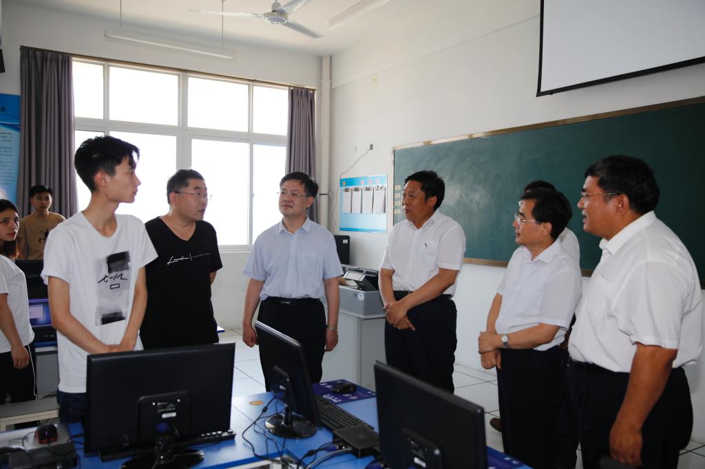 白皓一行现场考察了学院办学成果展及信息工程学院大学生创新创业中心,详细了解了学院滨海校区整体规划以及学院在教学、科研、技能大赛、学生培养、对外合作交流等方面取得的成果,认真听取了关于大学生创新创业情况汇报,并与大学生创新创业中心的学生进行了亲切交流。