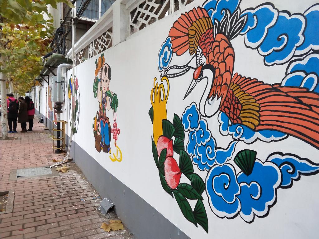 目前,墙绘作品已完成20余幅,其中,最大一幅作品长7米、宽2.4米。按照计划设计,共计完成100多幅作品。通过此次活动,希望在点缀社区美景的同时,让社区居民能更好地了解老潍县历史文化内涵和社会主义核心价值观内容及意义,也为拓展我院社会服务功能,推动我院继续教育转型、创新发展,助力我院优质校建设,更好推动实施“职业院校社区化办学”,打造文化名市贡献力量。(肖守利供稿)