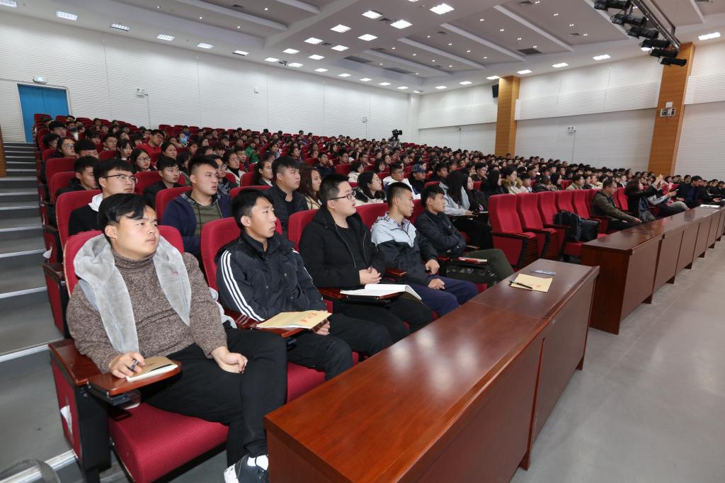 11月20日上午,学院第六十九次“企业家进校园”活动报告会在图书馆楼报告厅举行。威海市园林建设集团有限公司董事长戚海峰作了题为“一生只做一件事”的报告。科技处(产学研合作中心)相关人员和农林科技学院300余名师生参加报告会。