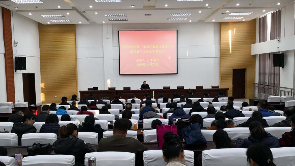 为深入学习贯彻庆祝改革开放40周年大会和全国教育大会精神,12月20日下午,学院副院长李瑞昌在清泽楼413室讲《加强党的建设 牢记立德树人根本任务 推进教学工作高质量发展》专题党课。教务处、农林科技学院、食品药品学院、通识教育中心党支部的全体党员参加听课。