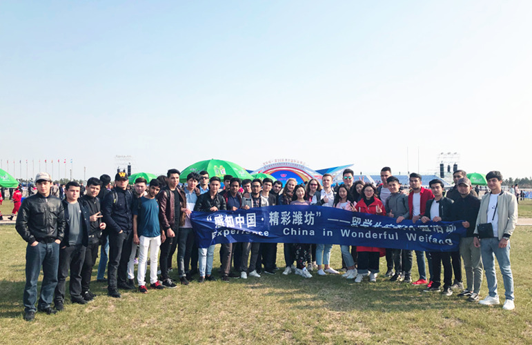 4月20日上午,我院来自吉尔吉斯斯坦、塔吉克斯坦、乌兹别克斯坦、哈萨克斯坦、土库曼斯坦、埃塞俄比亚等国家的62名留学生参加潍坊市风筝会办公室主办的“驻潍高校百名外国留学生感知风筝会”活动。