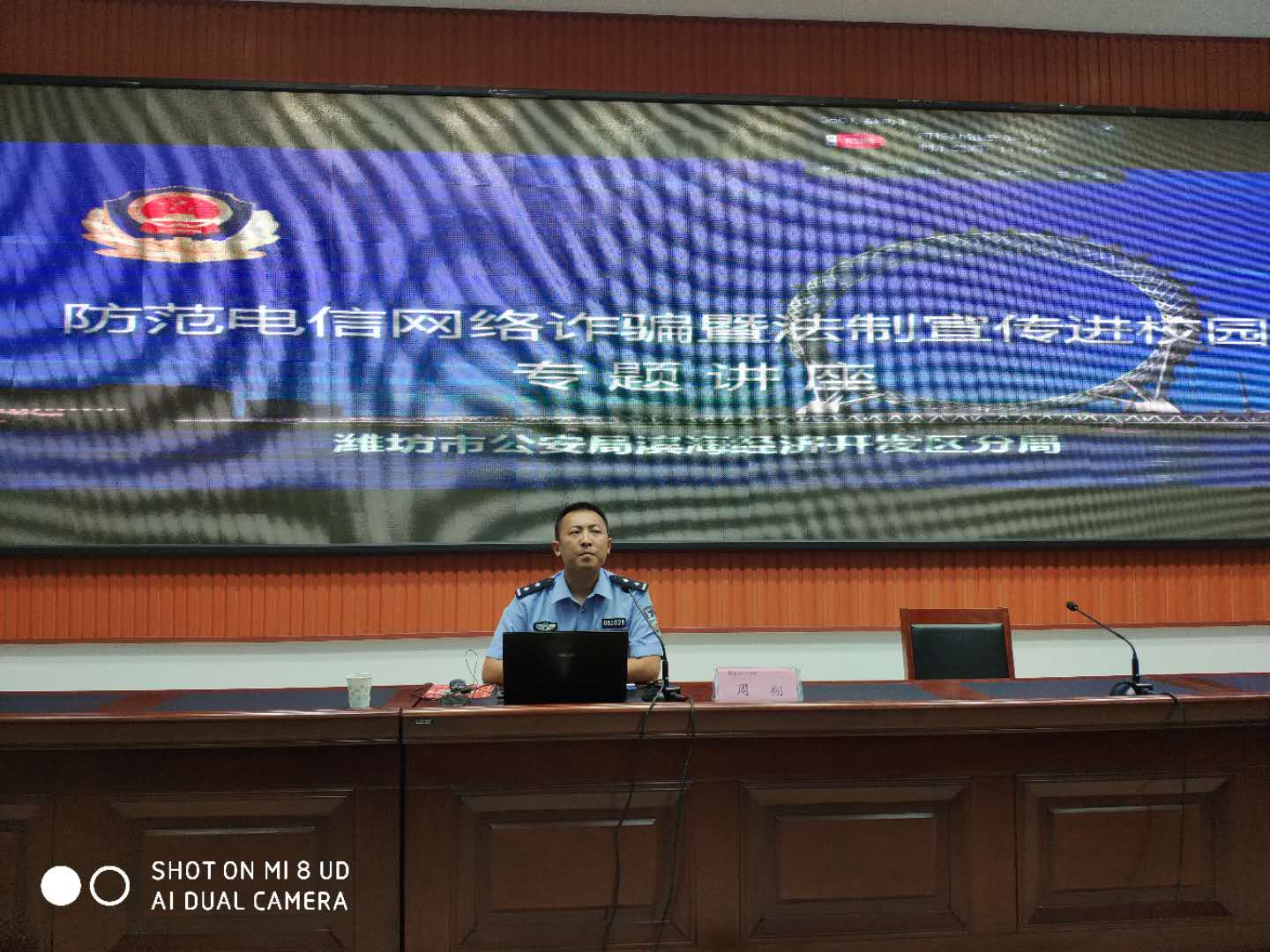 周翔警官根据多年办案经验,从当前电信诈骗犯罪的形式、特点、手段进行讲解,用典型、生动、深刻的电信诈骗犯罪案例进行深入剖析,指导大学生在学习、工作和生活中提高自我辨别和防范能力,远离“校园贷”、防范“电信网络诈骗”。通过专题讲座,使广大学生深受教育,认识到了电信网络诈骗的危害性,提升了安全防范意识,增强了防范电信网络诈骗的能力。