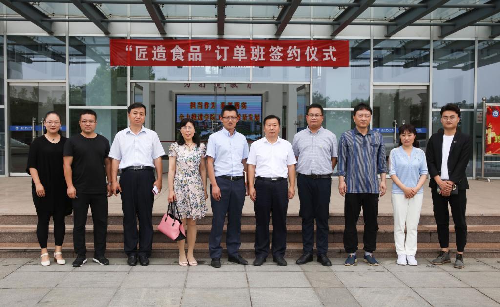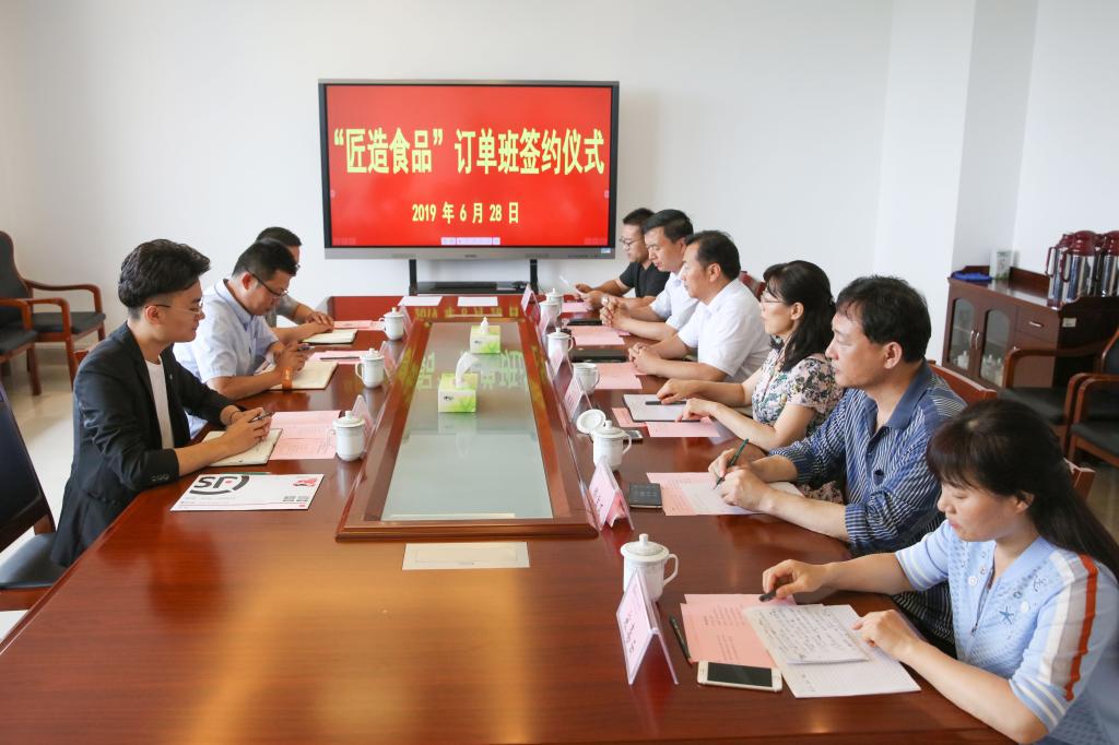 6月28日上午,我院与山东匠造烘焙食品有限公司合作“匠造食品订单班”签约仪式在滨海校区清泽楼205举行。学院副院长贺志强出席会议,潍坊匠造速冻食品有限公司总经理姚威一行、食品药品学院班子成员和食品专业教师及订单班学生代表参加会议。会议由食品药品学院分管负责同志主持。