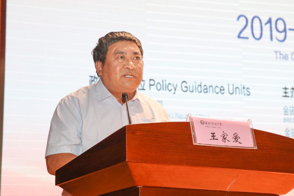 潍坊职业学院院长王家爱致欢迎辞。他表示,金砖国家技能发展与技术创新大赛组委会把本次大赛3个赛项放在潍坊职业学院举办,既是我们的使命和责任,也是对我院工作的肯定和信任。潍坊职业学院将以争创一流的精神,举全院之力,努力做好大赛的各项服务和保障工作,为大赛提供周到细致、安全可靠的服务,营造良好的比赛环境,为各院校切磋交流经验和为选手们争创优异成绩创造良好条件,确保大赛各项赛事顺利进行。