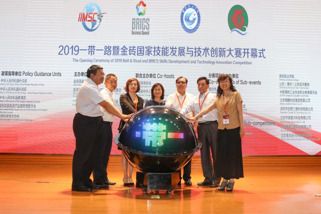 7月5日上午,2019一带一路暨金砖国家技能发展与技术创新大赛3D打印、冲压模具、无人机等10个赛项总开幕式在我院滨海校区图书馆报告厅举行,来自主办方、承办方、协办方以及支持并参与本届赛事的各企业代表、专家、选手共750余人参加。教育部中外人文交流中心副主任夏娟,潍坊市人大常委会副主任、滨海区党工委书记范福生,金砖国家工商理事会(中方)技能组组长刘振英,中国模具工业协会会长、亚洲模具联合会主席武兵书,潍坊职业学院院长王家爱,一带一路暨金砖国家技能发展国际联盟副理事长刘辉,北京精雕科技集团有限公司总裁助理李渊志,深圳市创想三维科技有限公司总经理刘辉林,北京华奥复兴科技有限公司总经理马川,潍坊职业学院副院长贺志强、李瑞昌等领导出席。