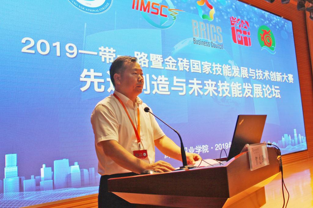金砖国家技能发展与技术创新大赛组委会执委会副主席、北京企学研教育科技研究院执行院长何勇作了《金砖国家技能发展路线图》的专题报告。他对来在国内外代表队前来参赛表示欢迎,指出十九大报告提出了要加快建设制造强国,阐述了一带一路暨金砖国家技能发展与技术创新大赛的背景和意义,制定出台了《金砖国家工商理事会宣言》《金砖国家领导人宣言》《金砖国家领导人第十次会晤约翰内斯堡序言》,阐明了未来技能计划、技能护照计划、共同建设国际未来技能训练基地、开放合作和共同发展的美好愿景。潍坊职业学院副院长李瑞昌作了《构建“五位一体”人才培养体系,培养创新复合型技术技能人才》的专题报告,介绍了学院办学基本情况,围绕“思政、专业、双创、劳动实践、文化”五个育人,阐述了培养什么人、如何培养人、为谁培养人,全力培养创新型、复合型技术技能人才。随后北京精雕科技集团有限公司总裁助理李渊志作了《精雕精密加工新技术,助力模具智能制造》,一带一路暨金砖国家技能发展与技术创新大赛赛项技术委会副主任、广西机械工程学会副理事长梁建和教授作了《COMET国际职业能力模型》,山东新锐机器人有限公司总经理刘桂欣作了《工业机器人人才培养助推区域产业发展探索研究》,一带一路暨金砖国家技能发展与技术创新大赛赛项技术委会主任、清华大学基础工业训练中心顾问付宏生教授作了《2019金砖+大赛各赛项技术层面顶层设计》的报告,赢得了热烈掌声和广泛好评。与会者认为,此次论坛精彩纷呈,收获颇多,希望以后能够开展更多此类国际论坛,搭建国际交流合作平台,为高等职业教育创新发展带来更多智力支持。