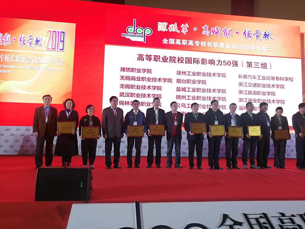 11月22日至23日,全国高职高专校长联席会议2019年年会在重庆召开。我院作为高等职业教育国际影响力50强院校荣获表彰,“十年磨砺援外路 教育输出结硕果”案例获评高等职业教育改革发展成果展优秀案例,是获表彰的20个优秀案例之一。本次年会共报送70个职业教育发展成就案例和306个职业教育改革成果案例,择优推荐249个案例进行了现场展示。
