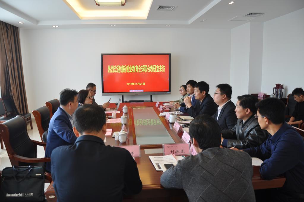 刘德强对客人的到来表示欢迎,介绍了学院发展情况和创新创业教育开展情况。明照凤介绍了山东商业职业技术学院创新创业教育工作的亮点和特色,对全球联合教研室的时代使命和2020年工作计划进行解读。随后我院相关负责同志就客人所关心的创新创业教育工作、创新创业教育未来的核心目标和关键任务、双方合作内容进行了交流探讨。最后双方进行全球联合教研室战略签约,并举行了揭牌仪式。