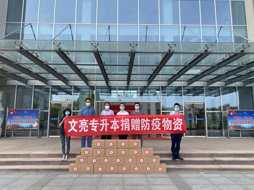 5月25日下午,济南文亮教育培训学校为我院捐赠外科口罩3000片、便携式酒精消毒喷雾800瓶等爱心物资,后勤服务处负责同志出席了捐赠仪式。