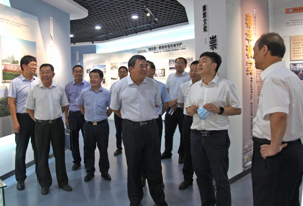 9月2日下午,省教育厅总督学邢顺峰、省教育厅学生就业创业教育咨询中心主任王志刚、省教育厅职业教育处副处长曾庆凯一行三人来我院调研指导工作。潍坊市教育局局长杜全平、潍坊市教育局二级调研员李广敬、潍坊市教育局高教职教科科长陈文陪同调研。学院党委书记马跃启、院长王家爱、党委副书记宋桂言、副院长贺志强、副院长刘德强出席工作座谈汇报会。