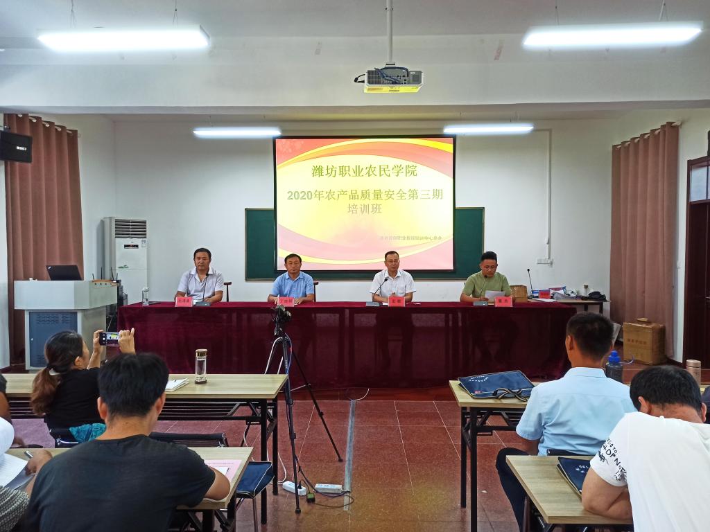 9月21日,潍坊职业农民学院2020年农产品质量安全第三期培训班在潍坊职业学院培训基地开班。开班仪式由潍坊普创职业技能培训中心主任董杰主持,农林科技学院党总支书记丁世民教授、临朐县农业农村局质量安全监管科科长巨泽良及继续教育学院相关同志出席培训班开班仪式。来自临朐县村级农产品监管员共计100余人参加本次培训班。