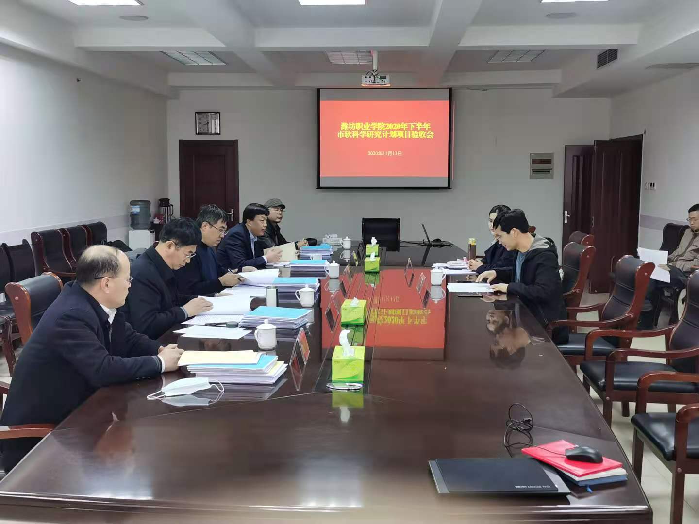 11月13日,潍坊市科技局组织来自潍坊科技学院、山东科技职业学院、山东经贸职业学院、潍坊工程职业学院的技术、管理和财务审计专家组成验收专家组,在奎文校区第二会议室召开验收会,对我院承担的9项潍坊市软科学研究计划项目进行了验收。
