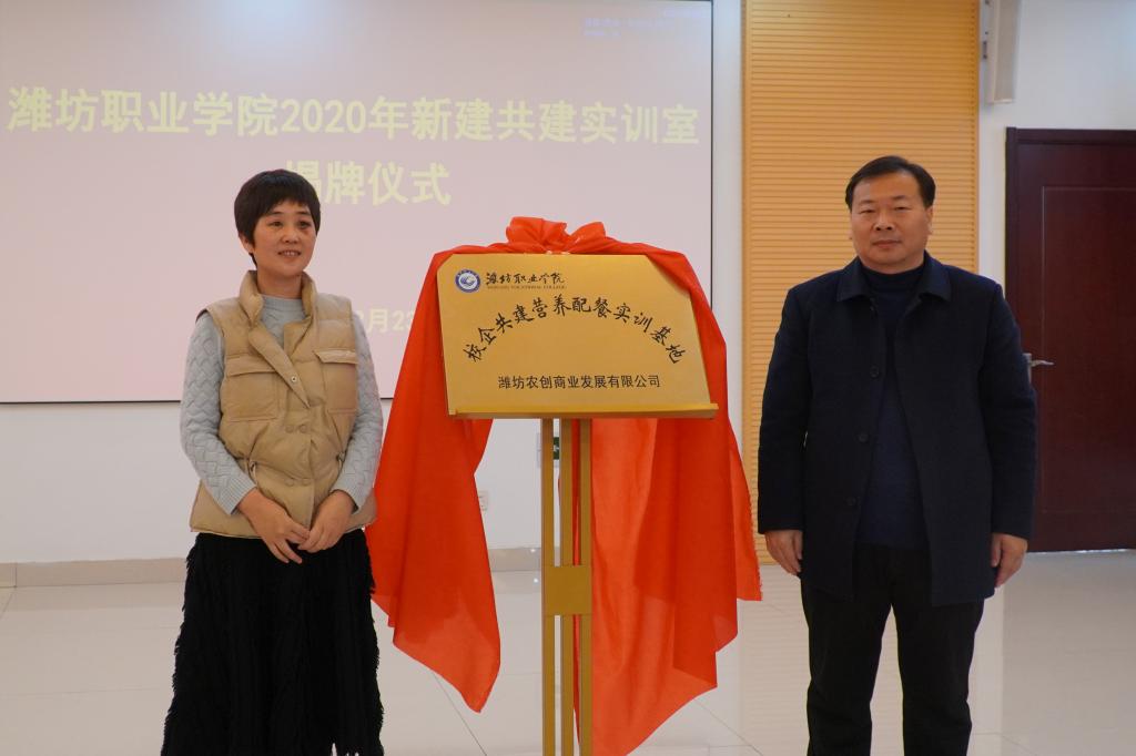 12月23日,学院举行2020年新建共建实验实训室揭牌暨启用仪式。中国建设银行股份有限公司潍坊分行副行长程刚、天津远洋泓基电子工程有限公司总经理周童、达内集团院校事业部北方区副总经理杨泽辉、山东齐鲁融媒体乡村振兴研究院有限公司总经理金鸿敏、潍坊农创商业发展有限公司董事郭艳文等企业领导出席。院长王家爱,副院长贺志强、李瑞昌,相关部门、二级学院负责同志参加活动。