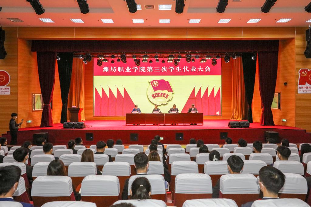 11月18日,潍坊职业学院第三次学生代表大会在滨海校区图书馆报告厅召开。学院党委副书记、副校长桑福岭,团委学生工作处负责同志、各二级学院团总支负责同志、团委工作人员和143名正式学生代表参加会议。