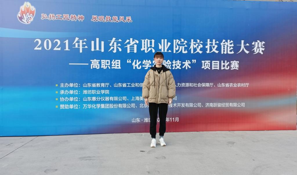 11月28日-30日,2021年山东省职业院校技能大赛(高职组)“化学实验技术”赛项在我院举行,全省共有32支代表队参赛,经过激烈比拼,化学工程学院李雪贞老师指导的刘玉婷同学凭借扎实的技能操作功底与良好的职业素养,沉着应对,最终斩获大赛一等奖第一名的好成绩。