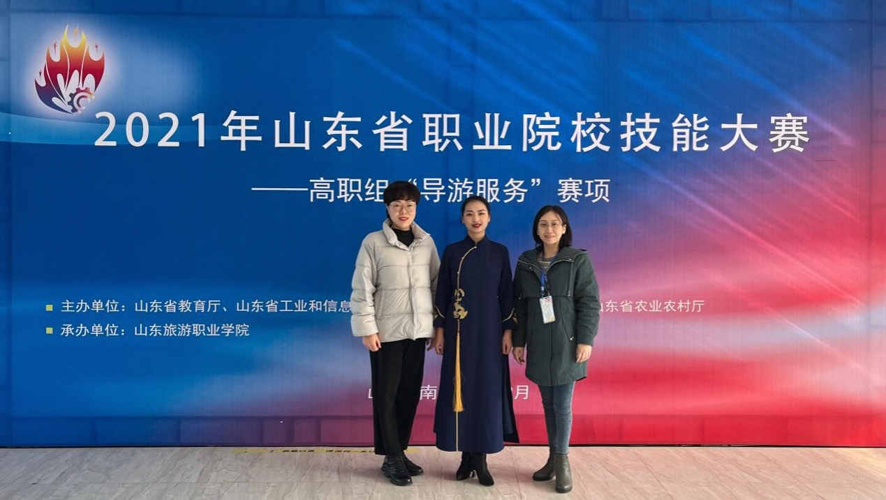 12月13至14日,2021年山东省职业院校技能大赛(高职组)“导游服务”赛项在山东旅游职业学院举行。我院2020级旅游管理专业王赛赛同学,在教师谭娜、刘杰指导下,认真备赛,沉着应战,最终在全省42支高职院校参赛队伍中脱颖而出,以总成绩第3名获得一等奖,实现了国际商务学院学生技能大赛的新突破。