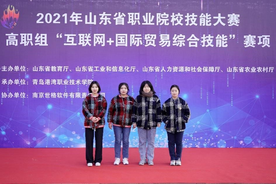 12月20日,2021年山东省职业院校技能大赛(高职组)“互联网+国际贸易综合技能”赛项在青岛港湾职业技术学院举行。我院教师王楠、王永霞带领刘富豪、王昭惠、吕景媛和王嘉四名同学组成的代表队参加了该项比赛。经过长达11个小时的激烈角逐,我院参赛选手配合默契、沉着应战,在全省38支队伍中排名第7,获该赛项二等奖,展现出了较高的技能水平和良好的职业素养。