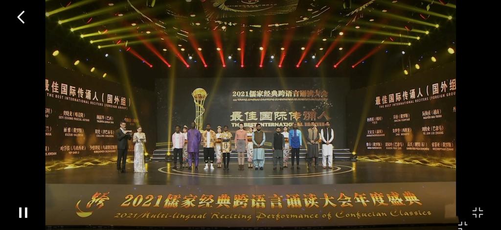 12月24日,由中国孔子基金会、尼山世界儒家中心、山东省教育厅共同主办,中国孔子网融媒体、山东省翻译协会承办的2021儒家经典跨语言诵读大会落下帷幕。本活动自9月份启动以来,历时100余天,来自世界各地近万名中国文化爱好者参加了本次比赛,我院留学生少德别克、阿博、穆迪经过激烈角逐和比拼,最终获得“最佳国际传诵人”称号。