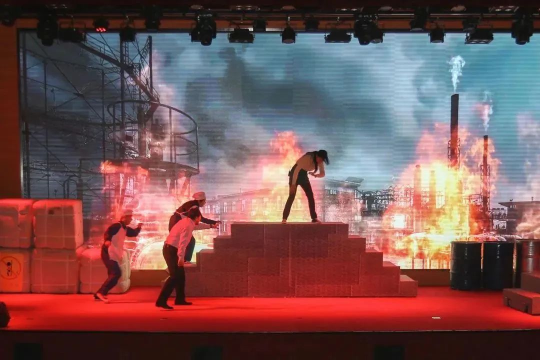 舞台剧《浴火重生》根据真实案例改编,以弘扬"人民至上、生命至上"理念为宗旨,以安全生产事故为素材,讲述了主人公吴永志因工厂没有排除安全隐患,违规再生产导致安全生产事故受牵连被判刑入狱。在这场事故中,他的妻子用生命践行了共产党员的责任与使命,牺牲在火灾现场。出狱后,吴永志成为了工厂的安全队长。他吸取过往惨痛教训,认真抓安全、搞训练,面对同事、女儿的不理解,他坚守在救援一线,为每位安全生产员制定了训练计划,搞突击演习,教给他们必备的安全理论知识。当暴雨来临,工厂面临突发事件,他和同事们用铁肩挑起重担,用行动诠释了安全生产的重要性的感人故事。该剧剧情丰富曲折,扣人心弦,视觉冲击感、现场代入感强烈,引起观众强烈共鸣,受到观看师生的高度赞扬。通过观看舞台剧使全体师生对安全生产的重要性有了更直观、更深刻的认识,对于强化安全生产“红线意识”,弘扬法治精神,有效防范和遏制重特大事故、引导大家不断提高应急处置能力,保障生命财产安全,促进校园安全稳定具有积极的指导意义。