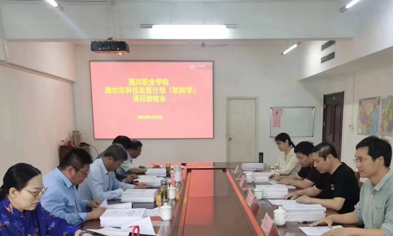 5月20日,潍坊市科技局组织来自潍坊医学院、山东交通职业学院、山东畜牧兽医职业学院、山东经贸职业学院、新联谊会计师事务所的技术、管理和财务审计专家,组成验收专家组,在奎文校区11号楼3楼会议室,对我院承担的2020年度、2021年度潍坊市科技发展计划(软科学)项目进行了验收。潍坊市科技局政策法规科与创新体系建设科科长董洪涛主持会议,学院科技处负责人和项目组成员参加了验收会,14个项目顺利通过验收。