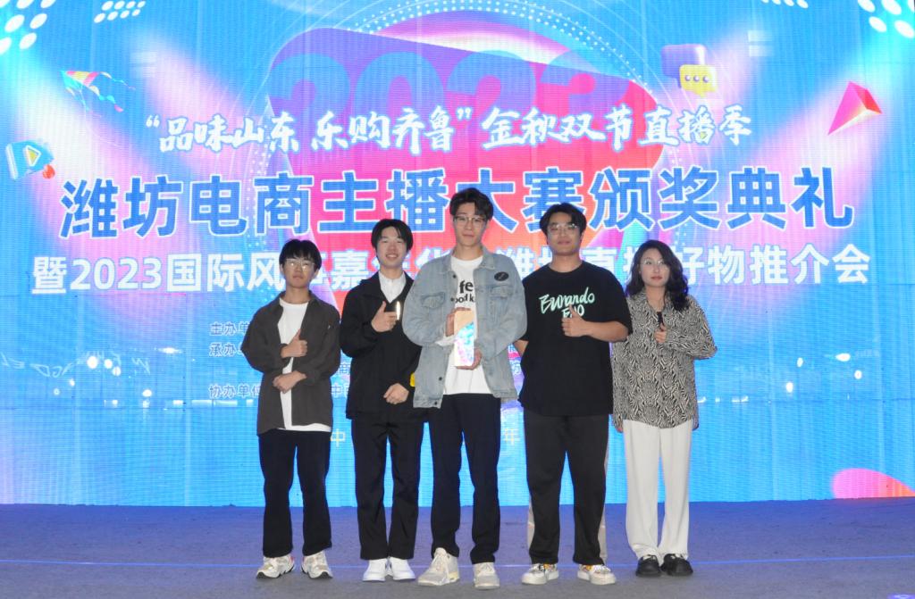 9月20日,由潍坊市商务局主办的“品味山东,乐购齐鲁”潍坊电商主播大赛决赛在潍坊市广播电视日报社成功举办,来自全市22个代表队参加角逐。我院学生刘政华、许振齐、许春原、梁晨、牛芮哲组成的代表队,在指导教师团队李航、刘迪迪带领下以第一名的优异成绩获得院校组团体冠军,指导教师李航、刘迪迪获评“优秀指导老师”。