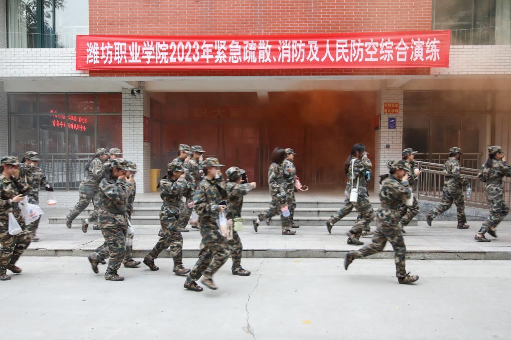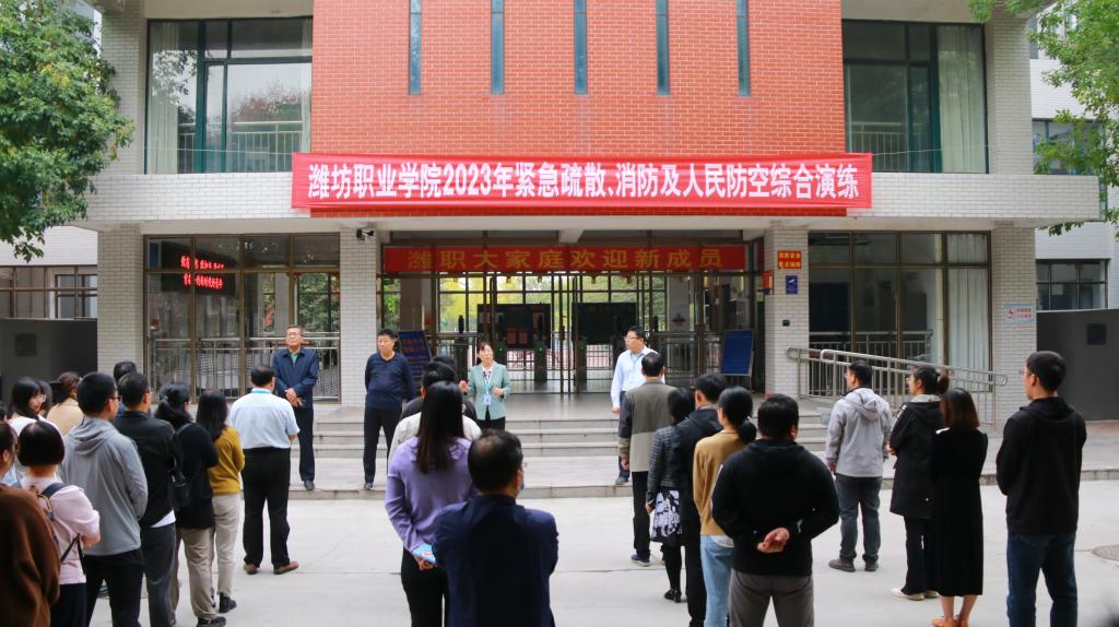 10月13日下午,学院在滨海校区、奎文校区同时举行2023级新生紧急疏散、消防及人民防空综合演练活动。学院副院长陈美霞出席活动。团委学生工作处、安全保卫处负责同志,各二级学院分管学生工作负责人、辅导员代表、军训教官及2023级全体新生参加了本次演练活动。