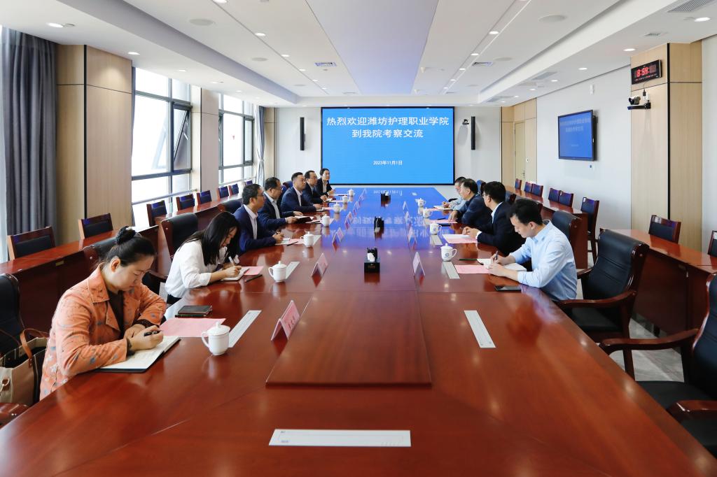 11月1日上午,潍坊护理职业学院党委委员、正县级干部卜令冲一行到我院考察交流。学院党委委员、副院长贺志强会见客人,办公室、组织人事处、教务处等有关部门负责同志陪同考察。