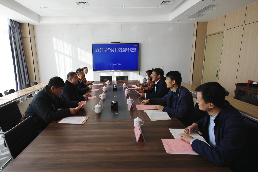 11月28日上午,喀什职业技术学院党委副书记、院长乃比江·亚生一行4人到我院考察交流。学院党委副书记韩瑞东会见客人,组织人事处、教务处和资产管理处负责同志参加座谈交流。