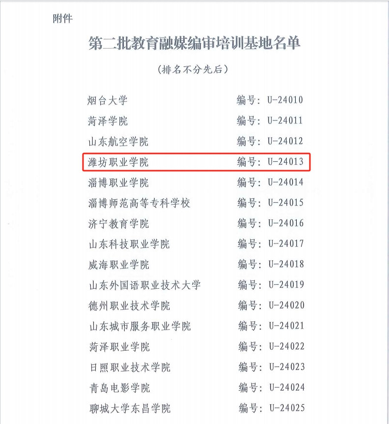 4月10日,山东教育融媒体联盟、山东教育舆情研究院发布《关于公布第二批教育融媒编审培训基地名单的通知》,我院作为潍坊市唯一高校,成功获批山东省教育融媒编审培训基地。