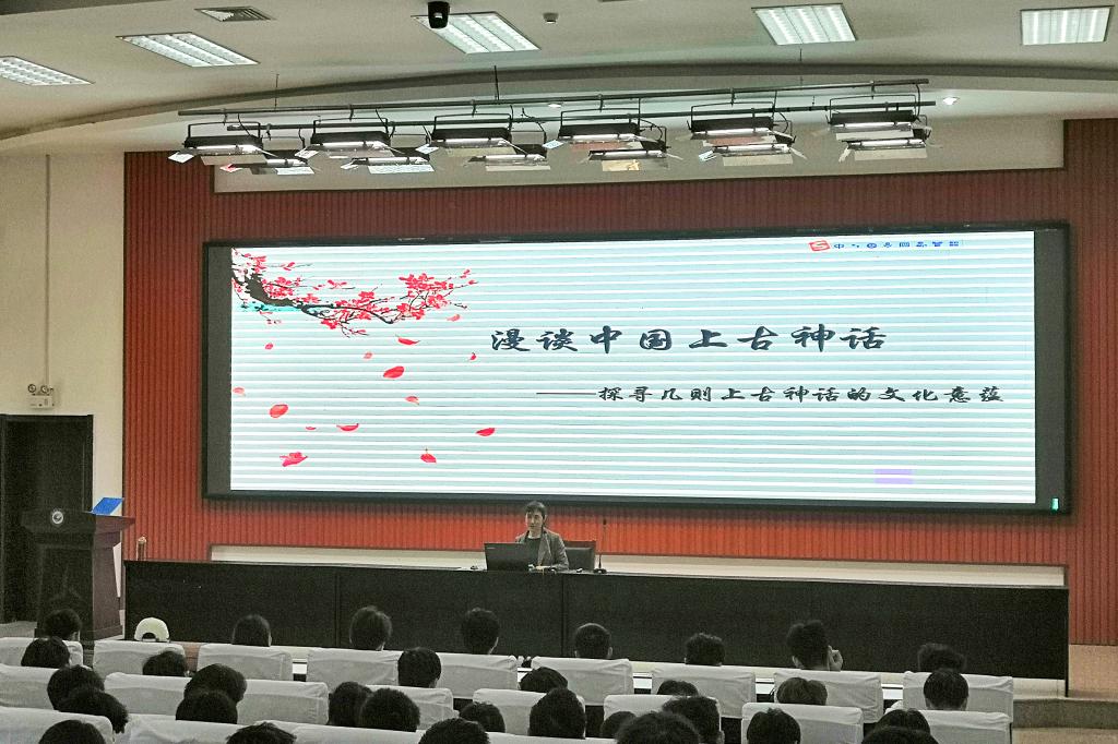 为落实立德树人根本任务,充分发挥“一站式”学生社区通识导师育人作用,近期组织“一站式社区”通识导师为学生开展“优秀中华传统文化系列”人文与思政讲座。4月25日,第110场人文与思政讲座在滨海校区清泽楼报告厅举行。通识教育中心聂凌燕老师作题为“漫谈中国上古神话”的讲座,2023级300余名学生聆听讲座。