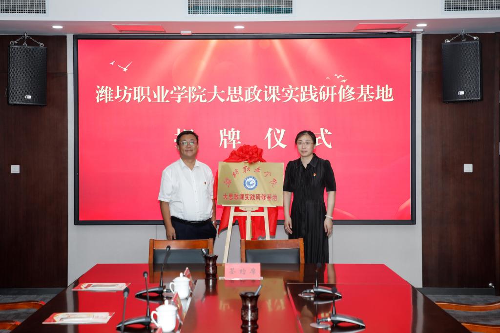 7月16日下午,师生到潍坊市党史教育馆参加实践研修。学院党委副书记韩瑞东,市党史教育馆馆长杨伟香,党委委员、办公室(统战部)主任(部长)刘志艳,党委委员、宣传部部长鞠桂芹出席学院大思政课实践研修基地揭牌仪式。韩瑞东与杨伟香共同为基地揭牌。杨伟香介绍了市党史教育馆基本情况,表示全力支持市党史教育馆与潍坊职业学院共建大思政课实践研修基地。鞠桂芹介绍了学院基本情况和思政课建设情况,希望学院与市党史教育馆加强合作,利用市党史教育馆特色教育资源,为大思政课建设、培养堪当民族复兴大任的时代新人作出更大贡献。双方共同签署校馆实践育人共建协议。党员重温入党誓词。师生参观了市党史教育馆,全面了解了潍坊不同历史时期,党领导人民艰苦奋斗的历程。