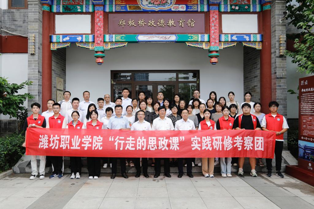 韩瑞东为学院“行走的思政课考察团”授旗。鞠桂芹对开展好活动讲了意见,一是提高认识,增强建设大思政课的紧迫性。思政课应从理论课堂深入社会大课堂,汇聚多元化“大思政课”资源,推动思政课实践教学;二是通力合作,形成全域融通大思政课建设合力。强化校地、校馆、校企合作,将鲜活案例运用到思政课教学;三是活学活用,不断提升大思政课育人成效。整合育人社会资源,以生动案例增强思政课针对性和亲和力。马克思主义学院主要负责同志宣读了《潍坊职业学院2024年“行走的思政课•大调研大实践”活动实施方案》,思政课教师代表作了表态发言。