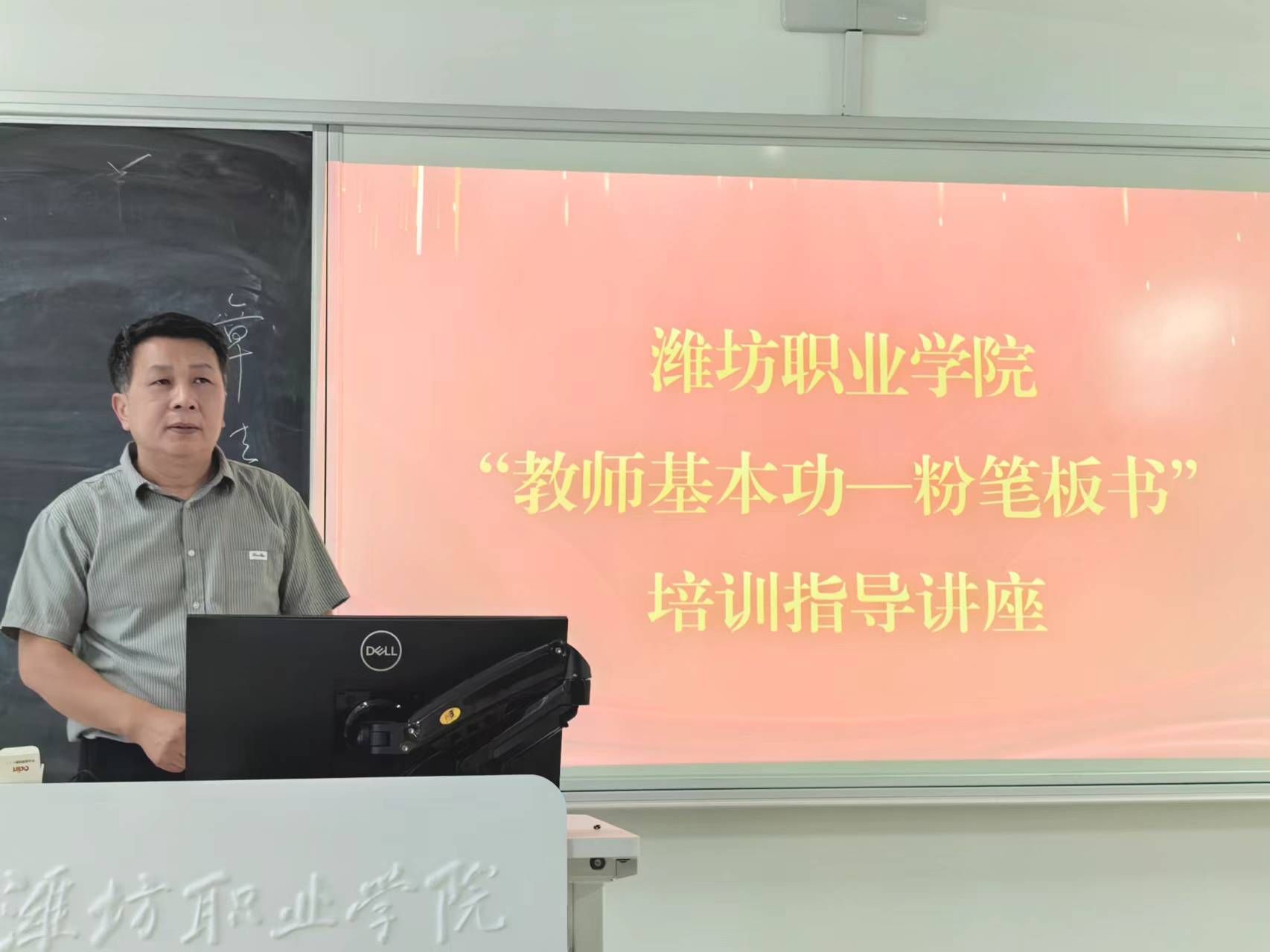 为不断加强教师教学能力建设,营造校园特色文化氛围,根据“潍坊职业学院教师基本功—粉笔板书比赛”日程安排,9月26日下午,学院在滨海校区南区智泽1号楼B213-214教室举办“粉笔板书培训指导”讲座。文化创意学院书法老师杜建伟应邀为参训教师作培训指导。