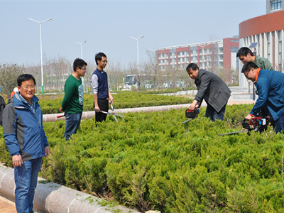 滨海校区绿化工作启动后,园林工程学院就组织2012级园林技术和园林工程技术专业学生介入施工过程,采取“项目轮训,工学交替”的教学方式,师生就是员工,工地就是课堂,克服种种困难,进行多个植物品种耐盐碱筛选试验,栽植花草树木50多个品种达20万株,按时保质完成了绿化美化工作。