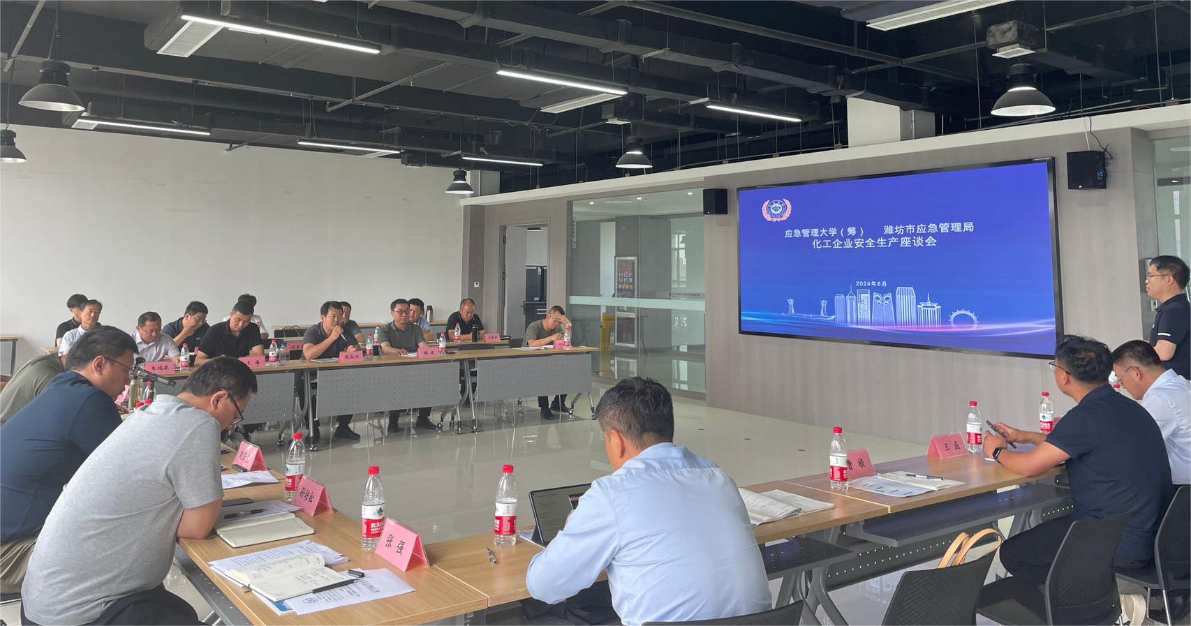 6月7日,应急管理大学(筹)调研组与潍坊市应急局在山东滨安职业培训学校召化工企业安全生产座谈会,潍坊市应急管理局党委委员、副局长李世龙,应急管理大学(筹)科技管理处处长张军,河北省危险化学品安全与控制技术重点实验室主任刘若尘出席活动,化学工程学院分管产学研负责同志和骨干教师应邀参加座谈会。