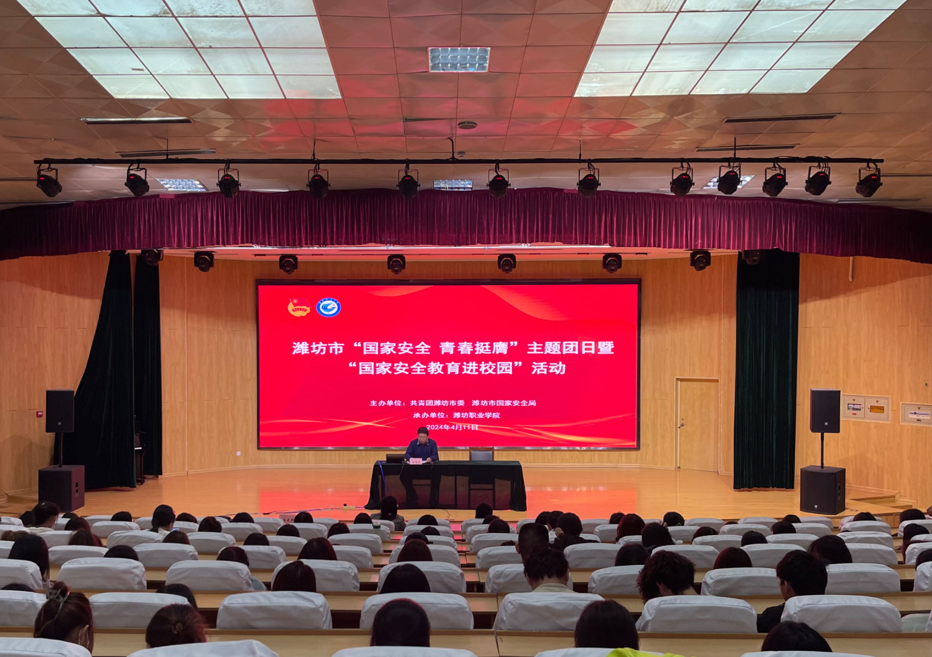 为进一步夯实广大青年学生维护国家安全的思想基础,增强学生对危害国家安全行为的防范意识,营造维护国家安全和社会稳定的良好氛围,4月11日,潍坊市“国家安全 青春挺膺”主题团日暨“国家安全教育进校园”活动在潍坊职业学院奎文校区举办。潍坊团市委权益部部长扈红蕾、潍坊市国家安全局宣讲专员、学院团委主要负责同志、学生代表等400余人参加活动。