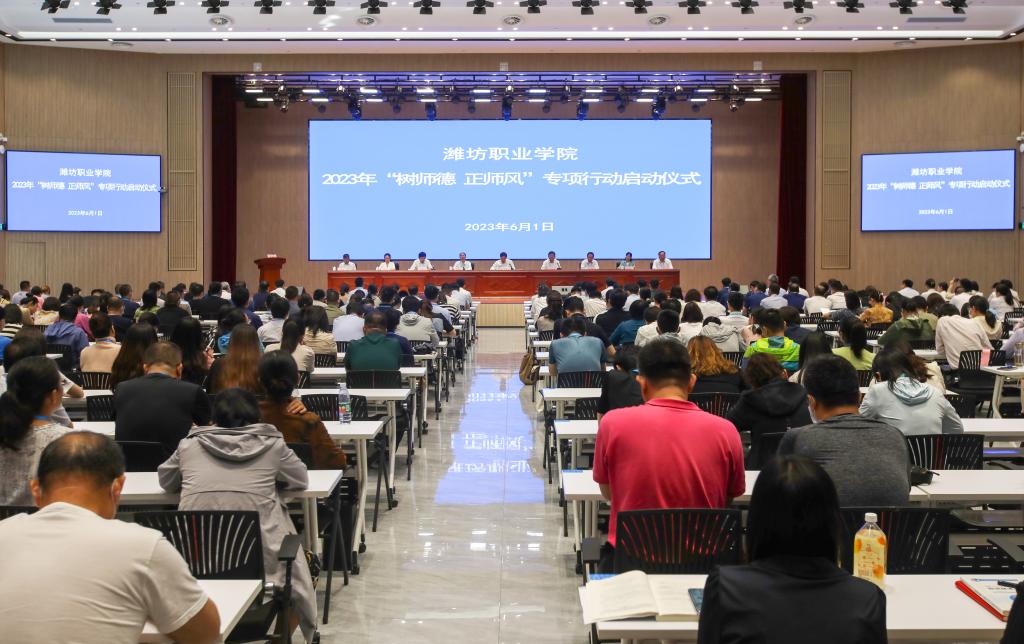 6月1日,学院举行2023年“树师德 正师风”专项行动启动仪式。仪式在滨海校区孵化楼报告厅、图书馆报告厅和奎文校区报告厅线下线上举行,学院党委书记刘建成率党政领导班子成员出席,学院全体教职员工1000余人参加。启动仪式由学院党委副书记韩瑞东主持。