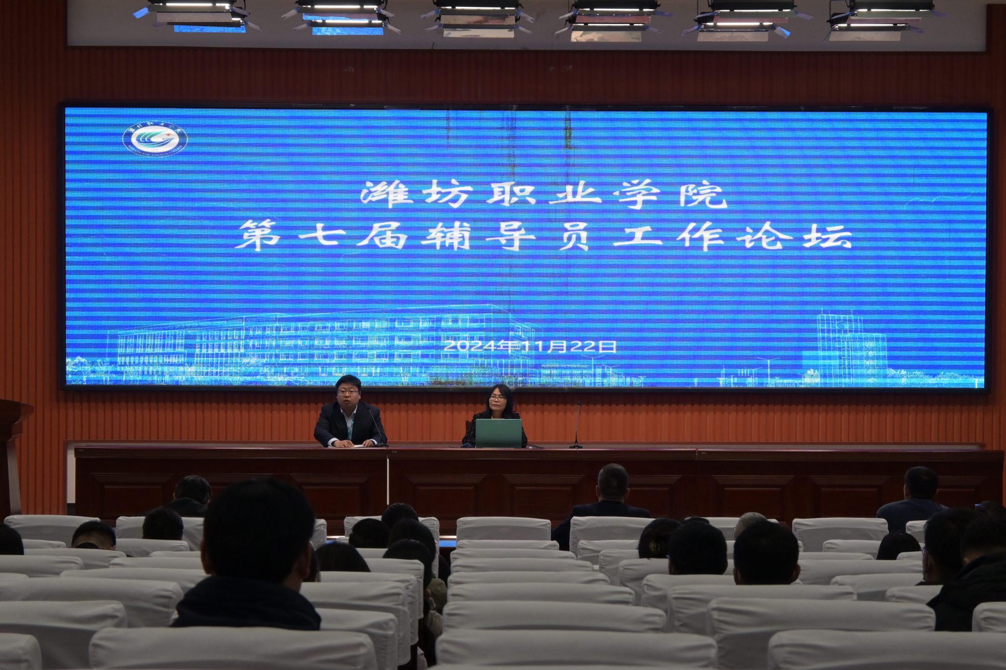 11月22日,学院在清泽楼报告厅举办第七届辅导员工作论坛。学院党委委员、副院长任培华出席活动,学生工作处主要负责同志、各二级学院党总支书记、分管学生负责人以及全体专职辅导员参加论坛,奎文校区辅导员参加线上论坛。