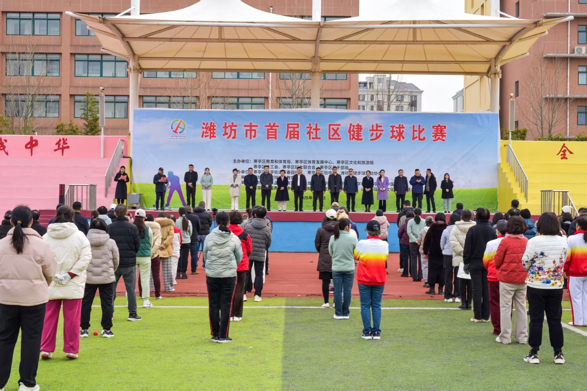 3月7日下午,值此三八妇女节来临之际,潍坊职业学院社区教育学院联合万春园社区、潍坊市健步球运动协会等单位在寒亭区实验中学成功举办潍坊市首届社区健步球比赛。我院继续教育学院负责人,寒亭区委教育工委常务副书记、寒亭区教体局党组书记、局长钱巍巍,寒亭区文化和旅游局党组书记、局长王亭,寒亭区妇联党组书记、主席刘燕等相关领导出席了开幕式。本次健步球比赛由寒亭区教育局和体育局、寒亭区总工会等相关单位精心策划与组织,我院社区教育学院积极整合社会资源,取得恒江食品配送等多家社会机构的配合赞助,全程协助比赛圆满举行。
