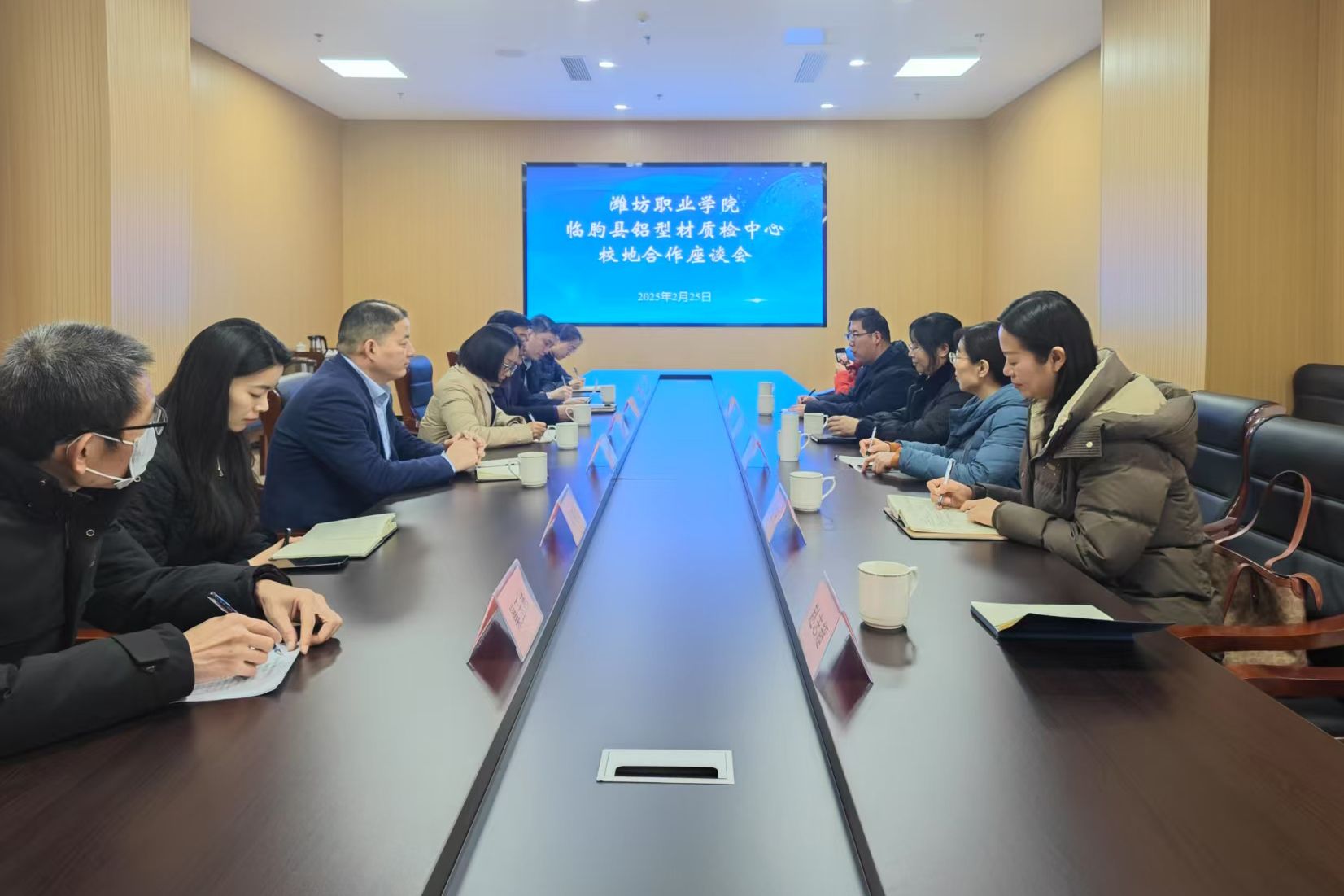 高凌云表示,学院一直以来高度重视校地共建共融工作,此次交流旨在着眼临朐发展所需,挖掘学院专业优势,更好服务临朐经济社会发展。陈美霞详细介绍了学院办学历史、办学特色及近年来在人才培养、产教融合、社会服务等方面取得的成绩,并对临朐县政府对学院的认可和关注表示感谢。座谈期间,双方就山东省蜂产品质检中心创建、蜂产品成果转化、科研创新与平台共建、资源共享等交换了意见。
