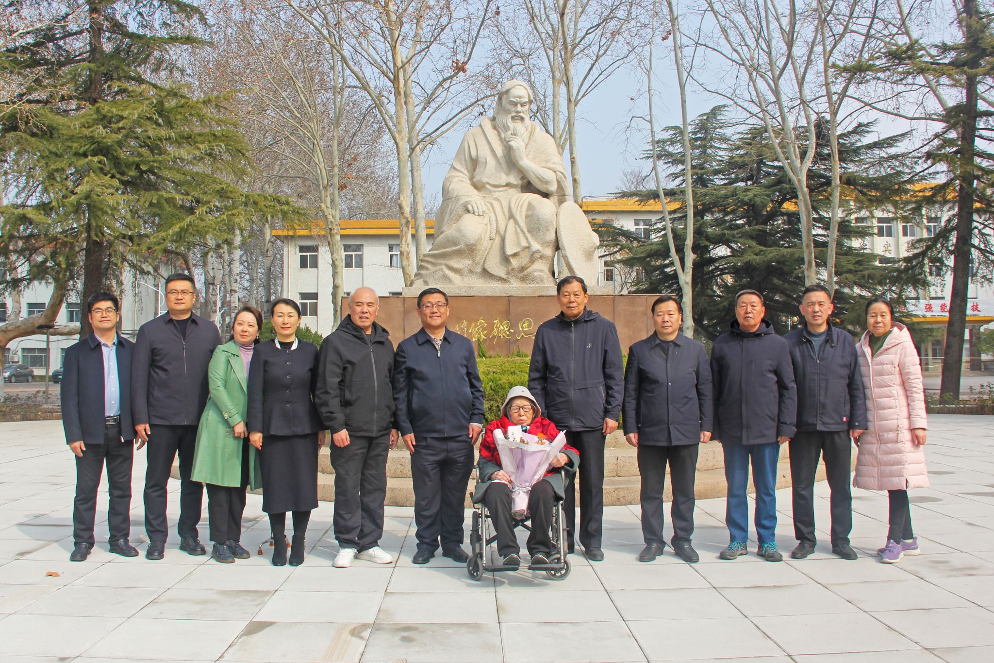 3月11日,春意盎然,学院迎来了一位特殊的客人——百岁离休干部邹立新,学院党委副书记韩瑞东、贺志强,离退休党总支书记刘贞富,党委委员、办公室(统战部)主任(部长)刘志艳,党委委员、组织人事处(离退休工作处)处长于涛,离退休第二党支部书记戴维一,图书馆馆长等与她进行了座谈,并陪同参观了奎文校区校园。