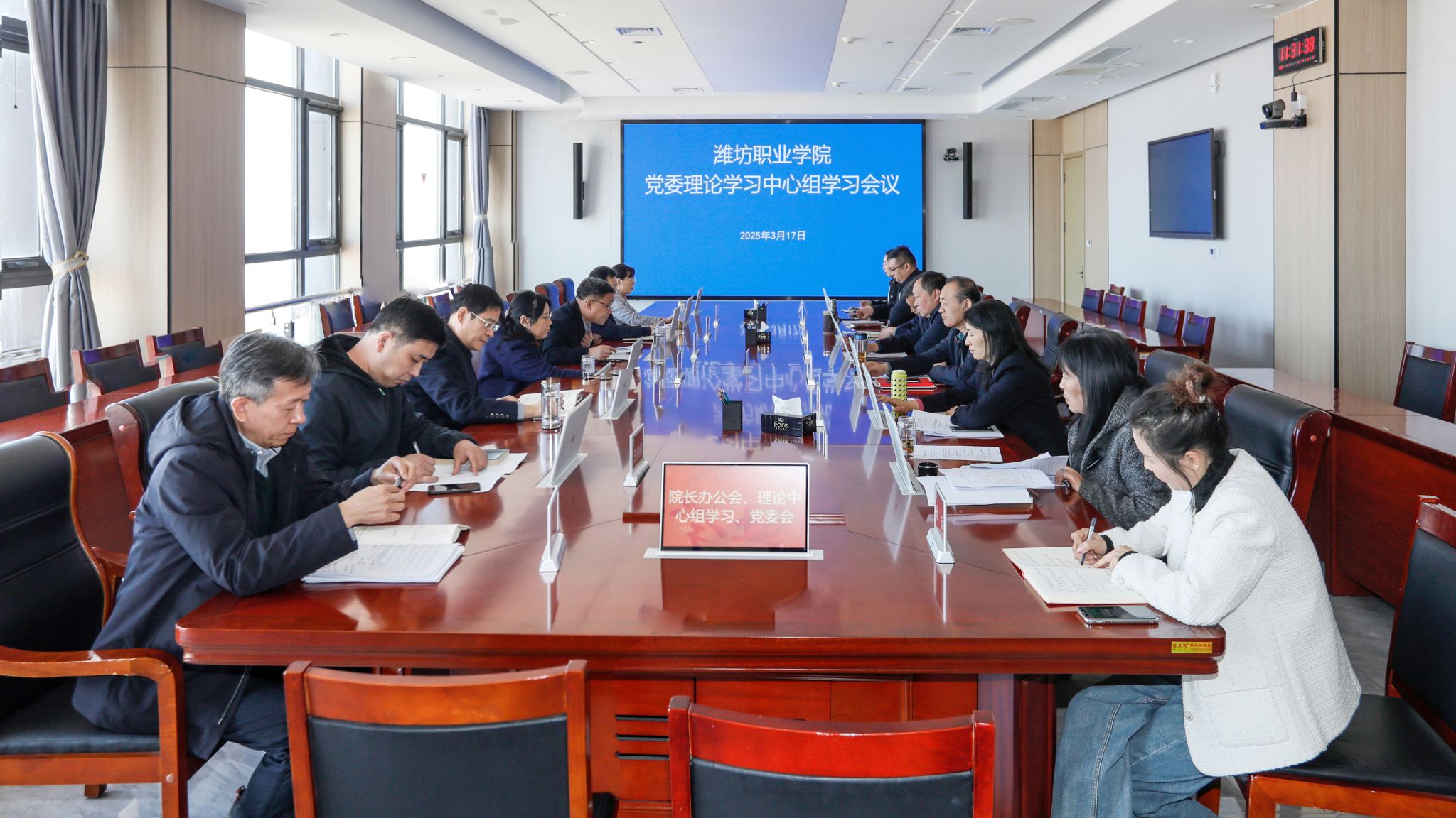 为深入学习贯彻2025年全国两会精神,努力开创学院高质量发展新局面,3月17日上午,潍坊职业学院党委理论学习中心组召开学习会议。学院党委副书记韩瑞东主持会议,党委理论学习中心组全体成员参加。